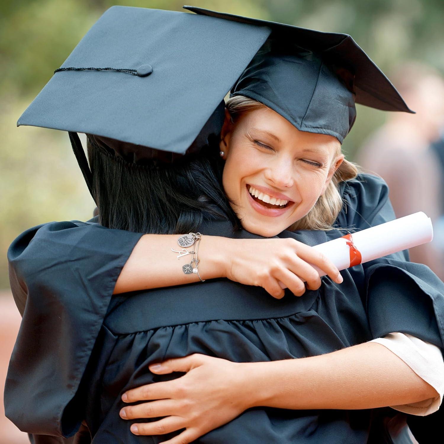 Hidepoo Graduation Gifts for Her Bracelet, 14K Gold Plated Graduation Compass Bracelet Class of 2025 Graduation Bracelets for Women Initial Bracelet College High School Graduation Gifts for Her 2025